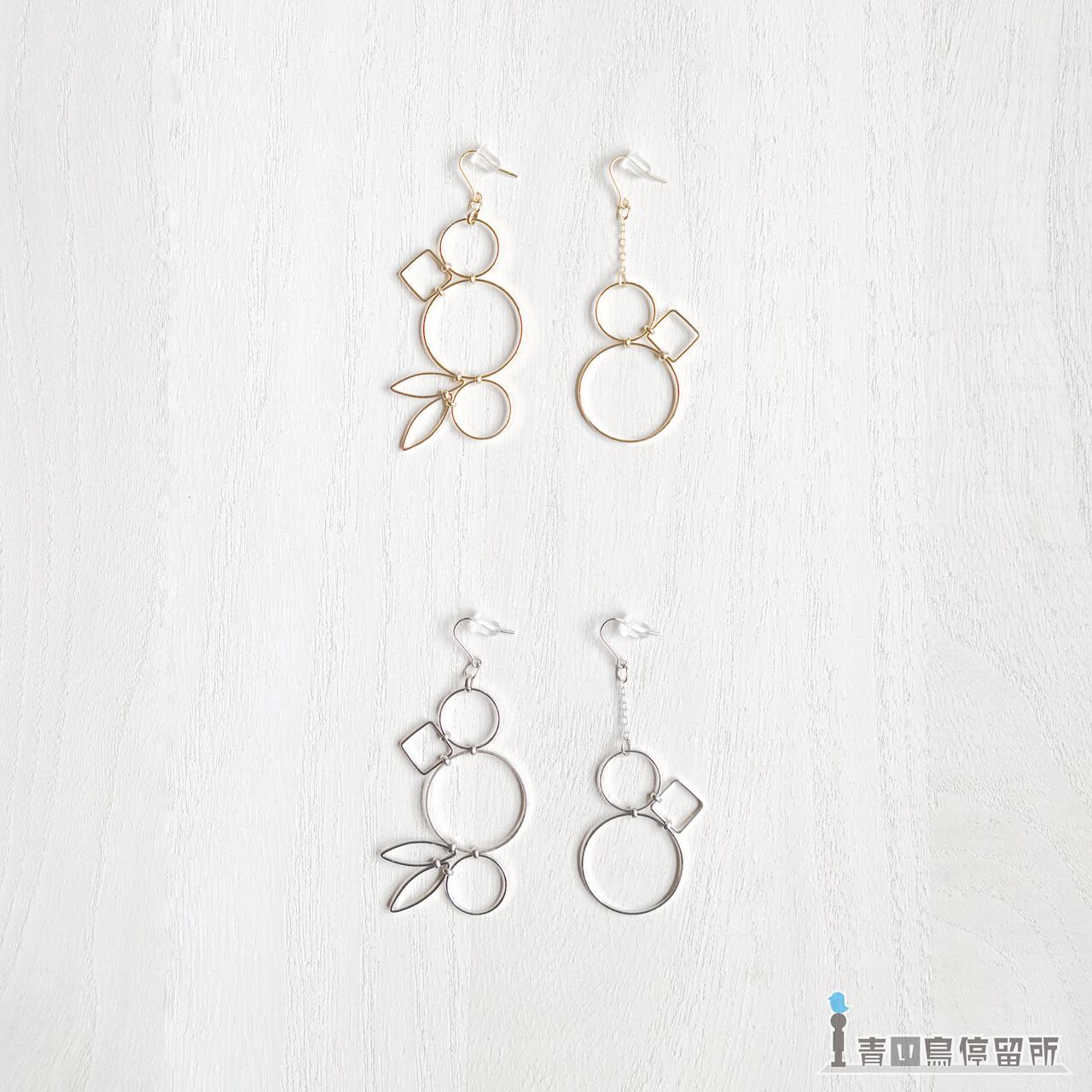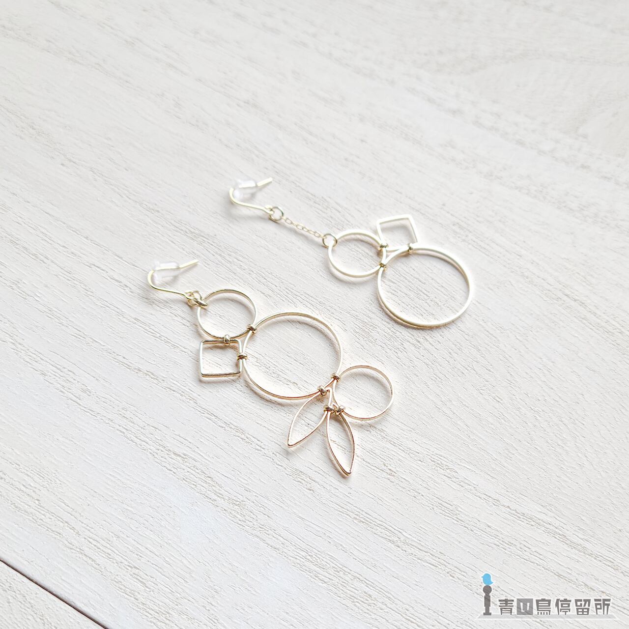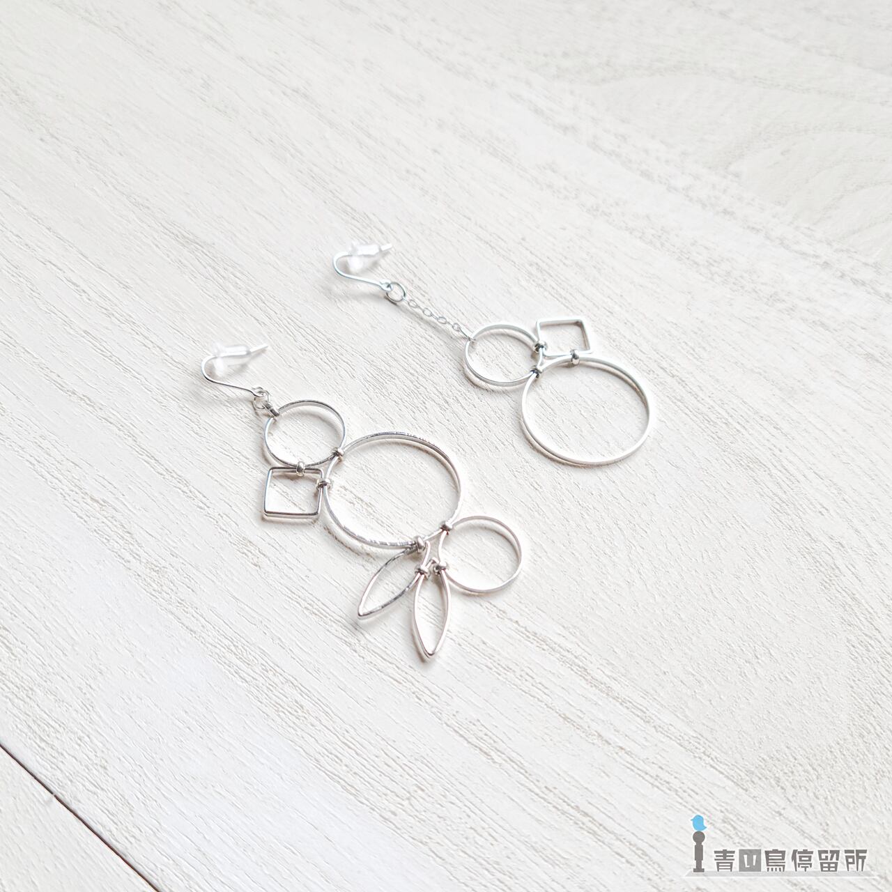 アシンメトリーデザインの、ゆらゆら揺れる存在感のあるピアスです。