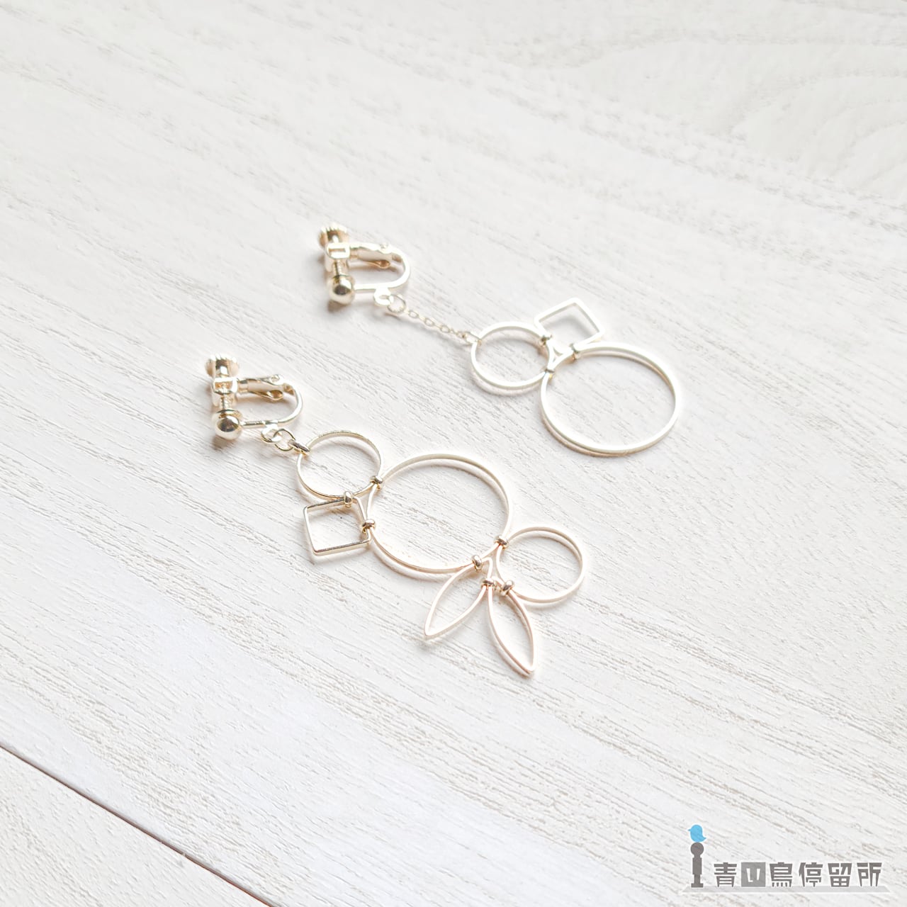アシンメトリーデザインの、ゆらゆら揺れる存在感のあるイヤリングです。