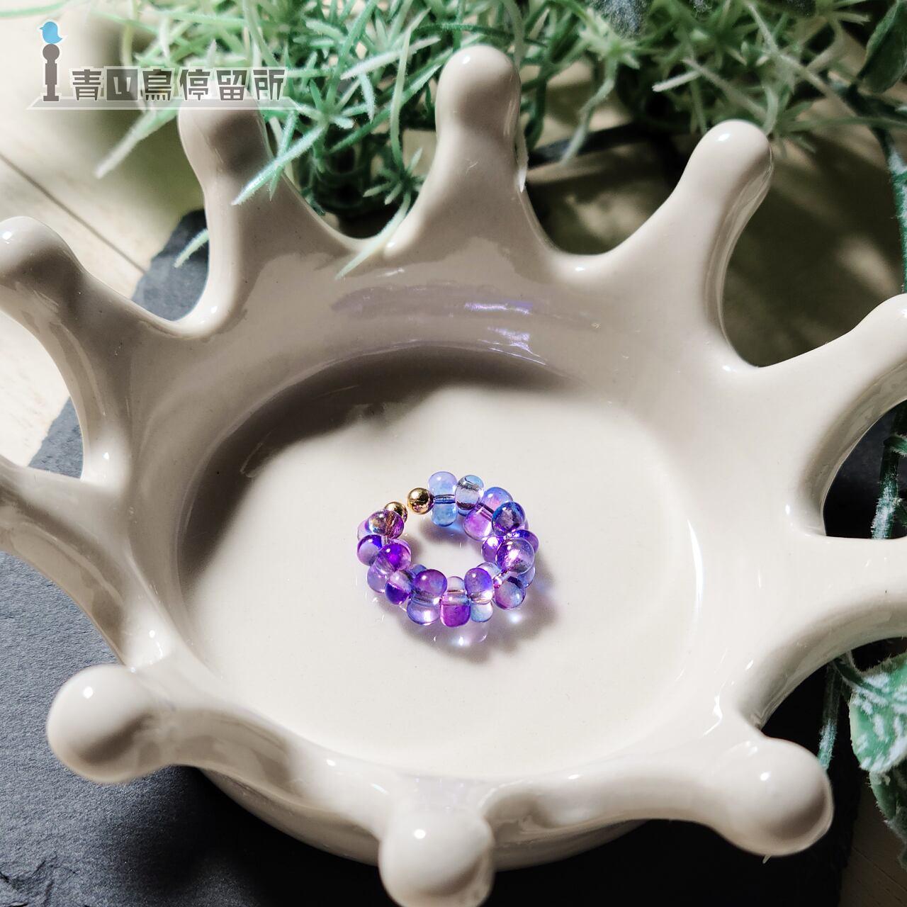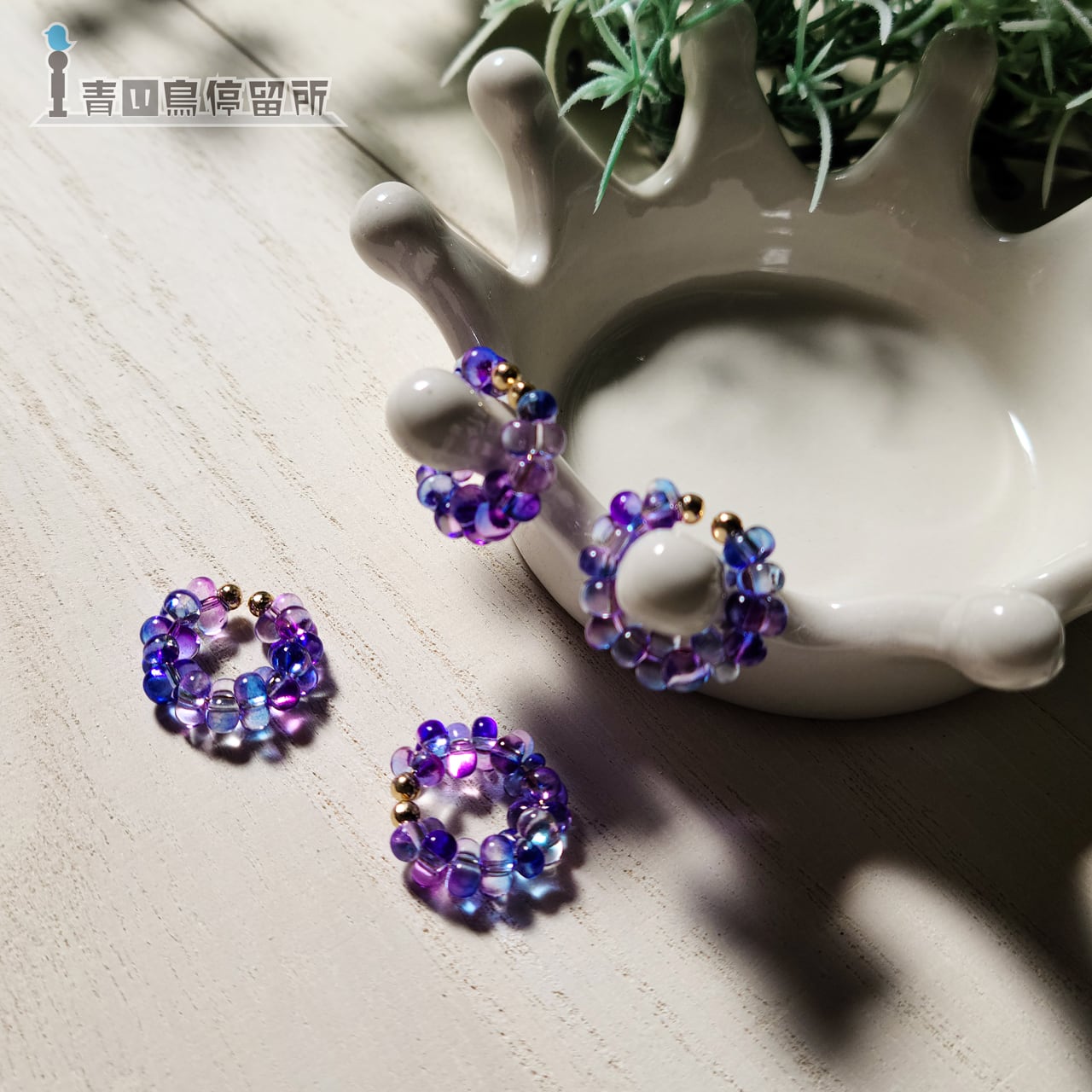 ブルー×パープルのガラスビーズを集め、つぶつぶした質感のイヤーカフに仕上げました。