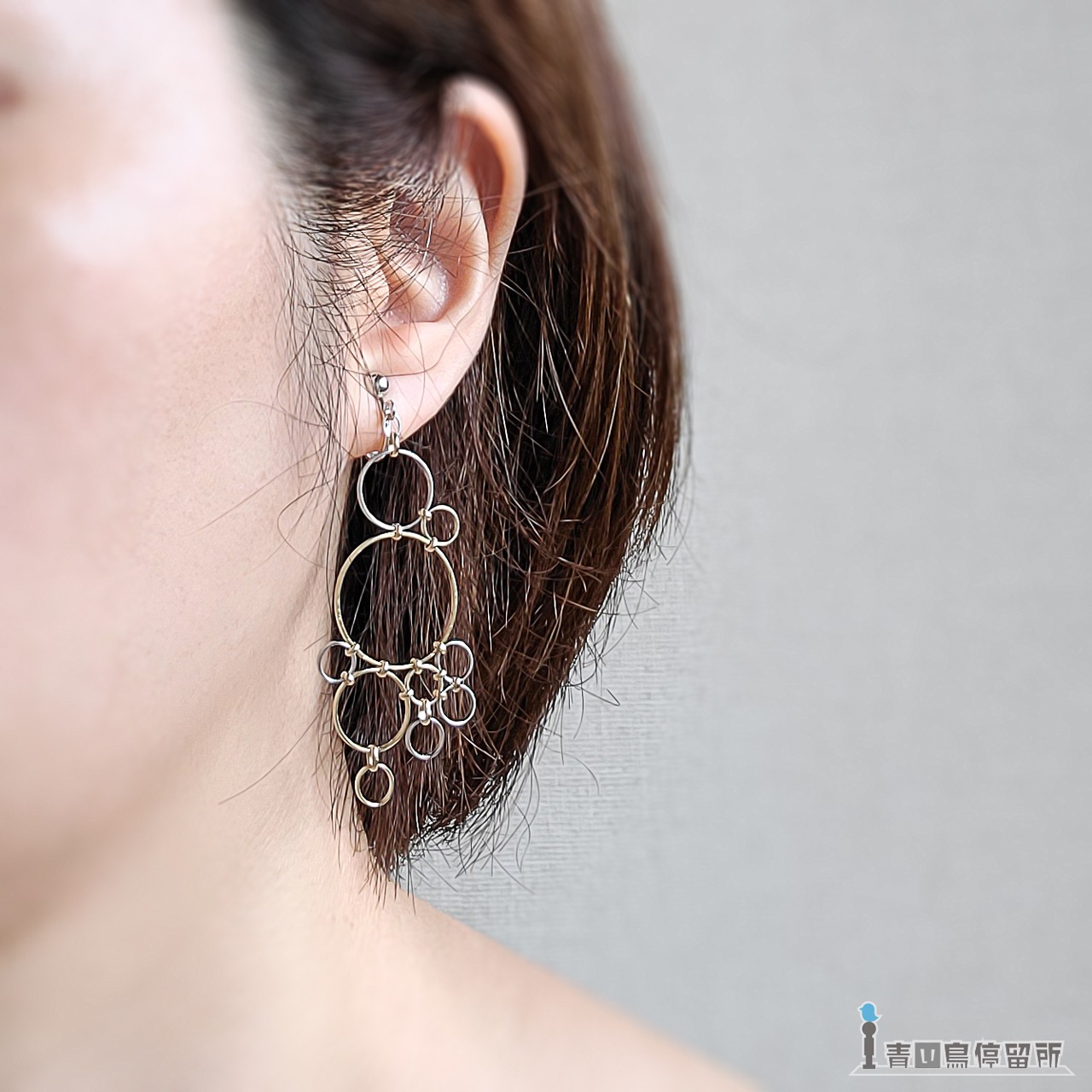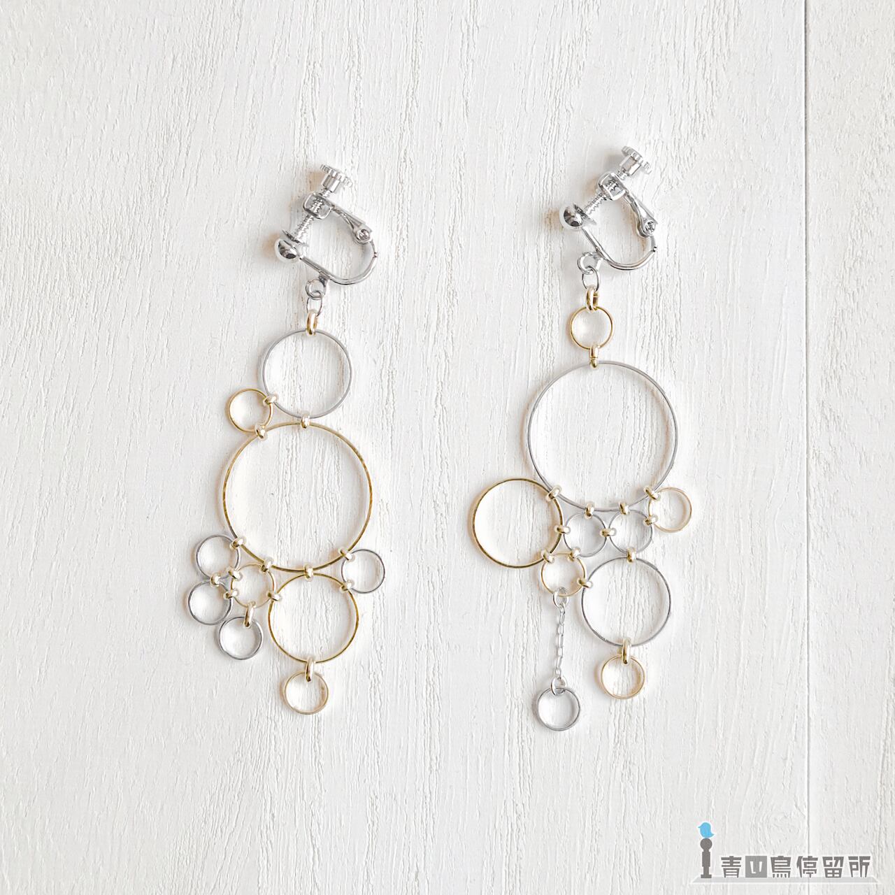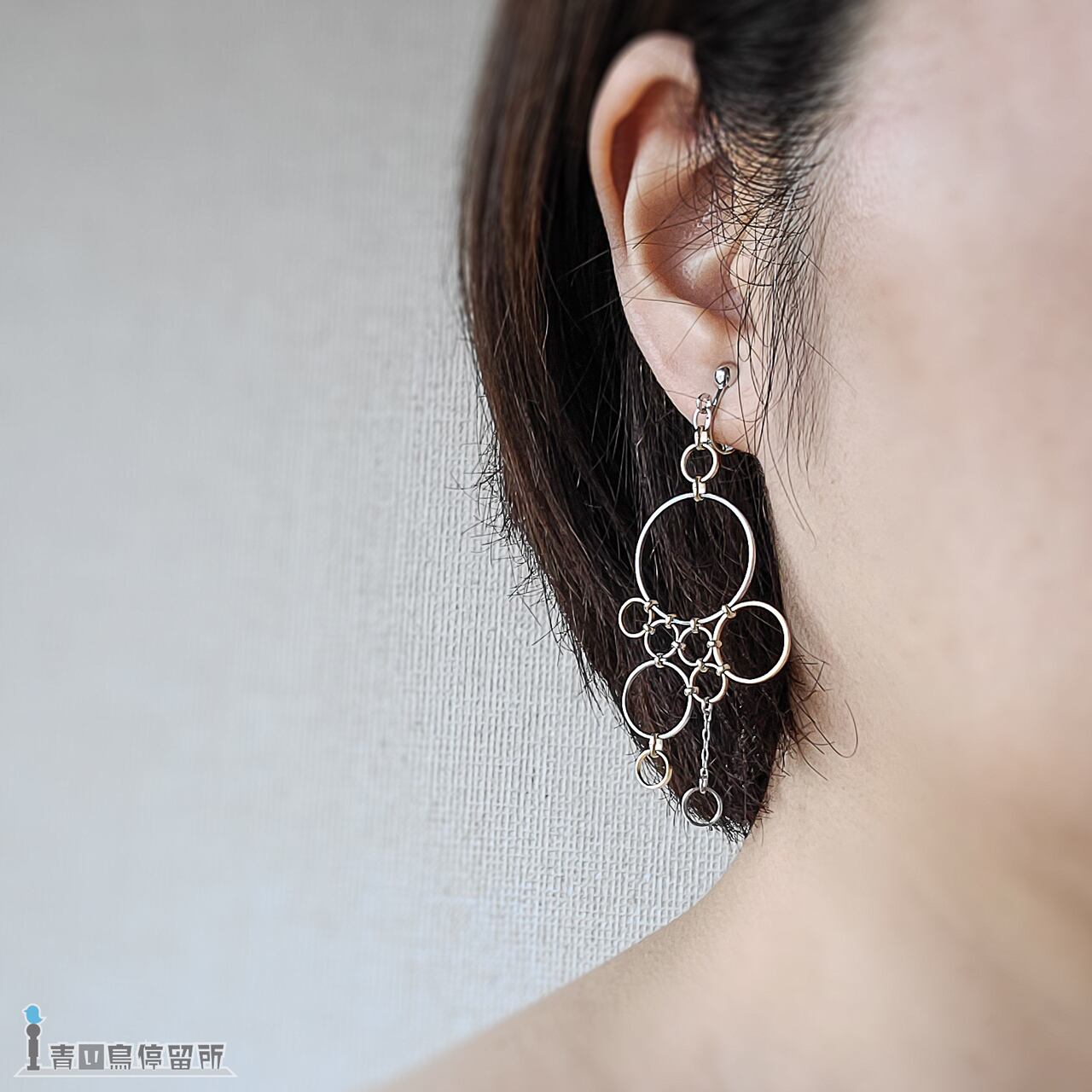 左右で全く異なるデザインとなっており、片耳イヤリングとしてもお使いいただけます。