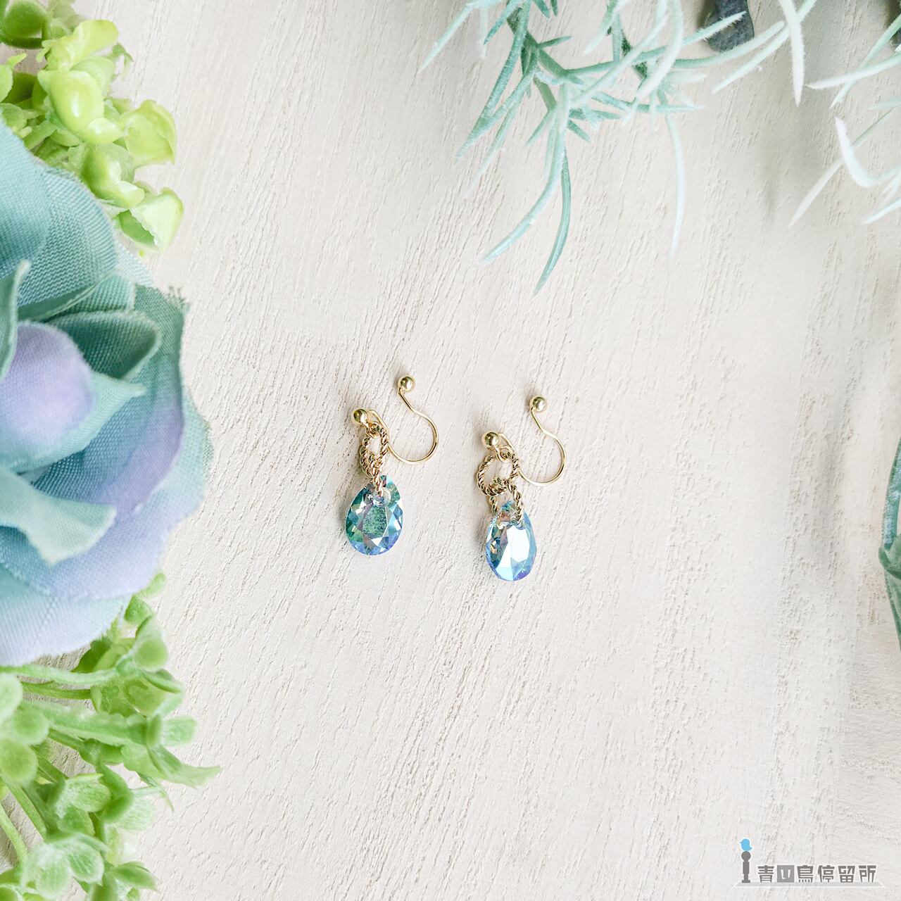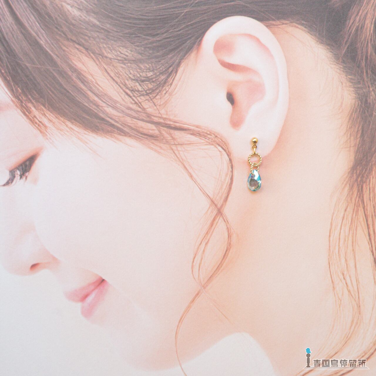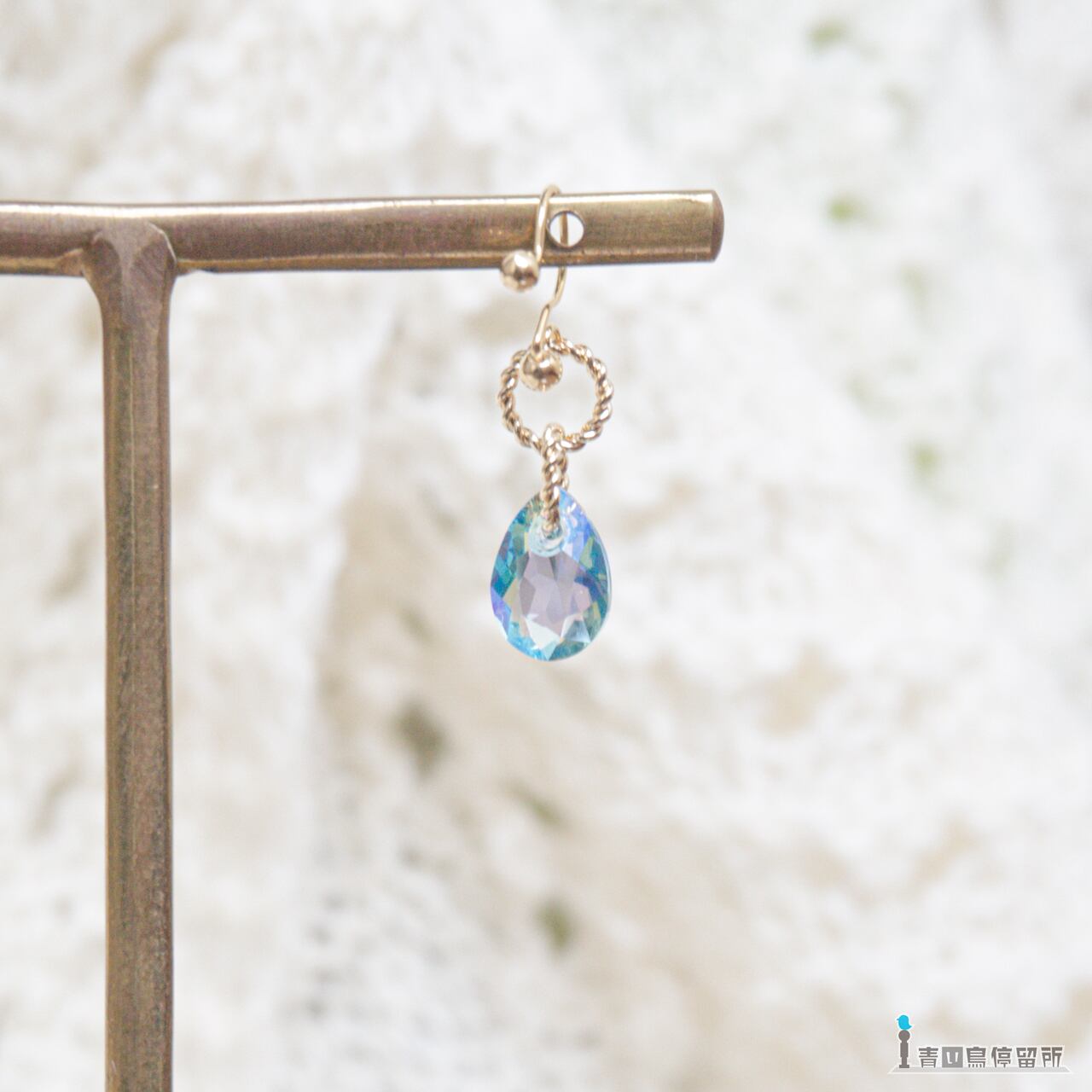 不思議な輝きを宿した水色のしずくをあしらった、小さなイヤリング。
